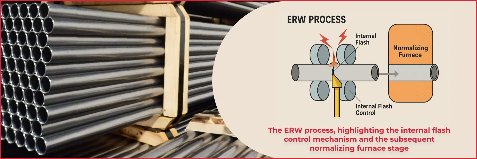 - ERW Welding: High-frequency electric current intensely heats the mating edges, which are then forged together under pressure by rollers, creating a longitudinal weld without added filler metal.